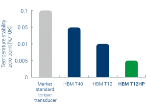 Due to its superior temperature stability with a TC0 of 0.005%/10K the T12HP torque transducer with FlexRange™ capability provides better accuracy over the complete measuring range than any standard dual range torque transducer.